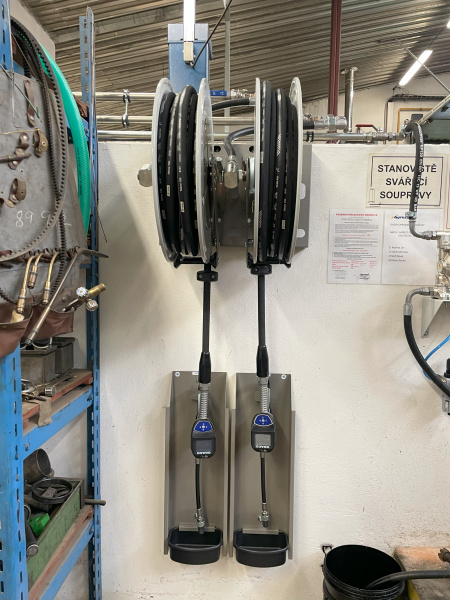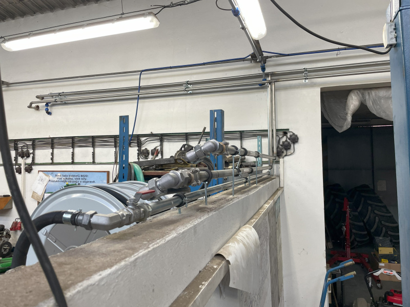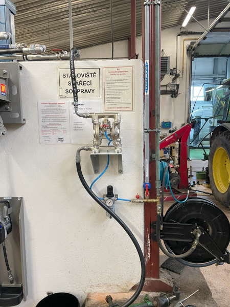 Olejové hospodárstvo pre servis poľnohospodárskej techniky v spoločnosti Agrozet v Jindřichovom Hradci. Výdaj osadený monitorovacím bezdrôtovým systémom Pulse Pro s prípravou na napojenie do systému Helios.