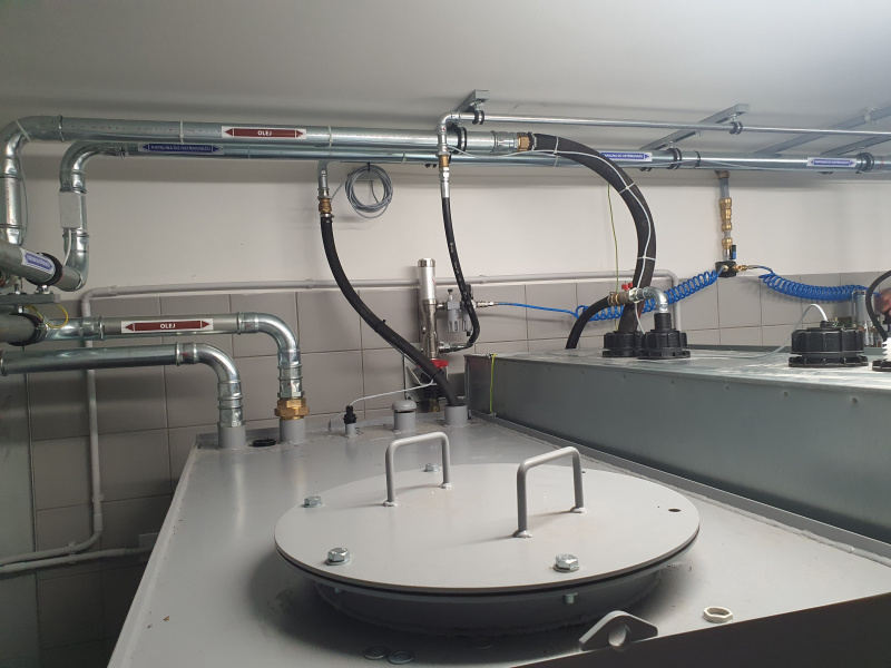 Dodávka výdajného baru na výdaj dvoch olejov a chladiva v novom servise BMW v Brne. Výdaj nových olejov cez monitorovací systém s prenosom dát do PC. Dodávka technológie pre zber použitého oleja mobilnými kombinovanými odsávačkami a vypúšťačkami. Skladovanie použitého oleja v dvojplášťovej na zákazku vyrobenej celokovovej nádrži.