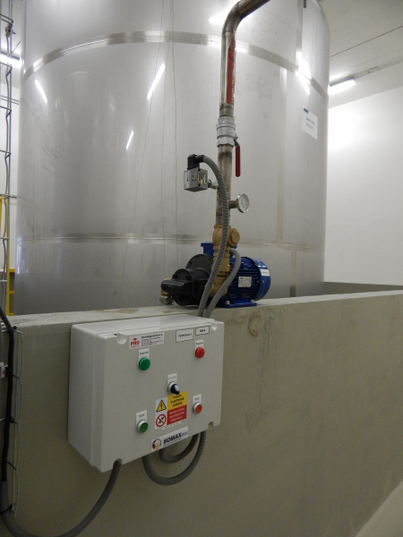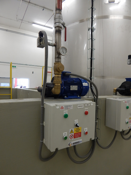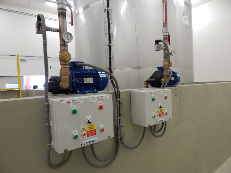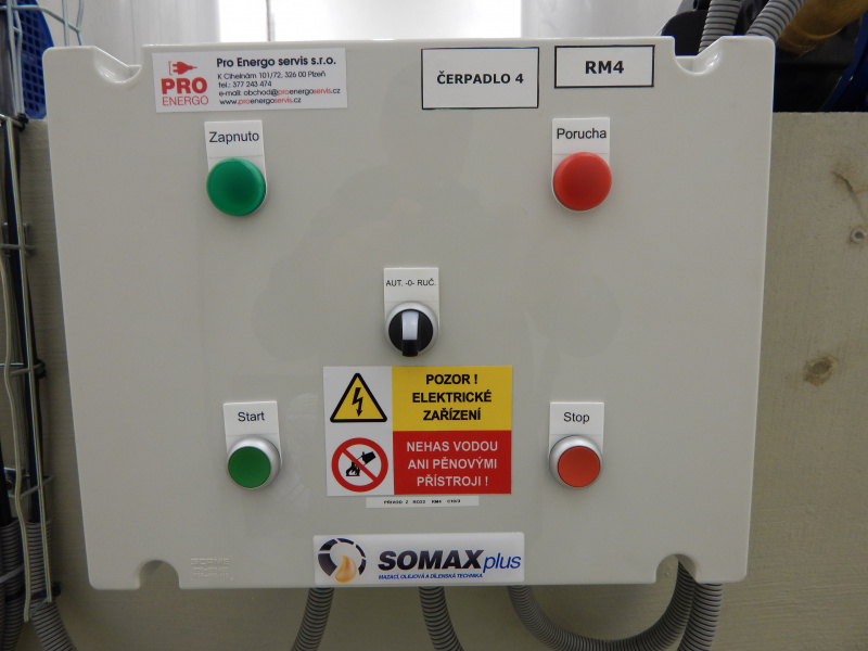 Realizácia stáčania olejov do špeciálnych vertikálnych nádrží pre automotive výrobu BWI Cheb. Stáčanie realizované cez stáčaciu skriňu umiestnenú na fasáde. Systém vybavený elektrickými čerpadlami s vysokým prietokom. Dodávka vrátane na zákazku vyrobených rozvádzačov s kontrolou funkcie čerpadiel a možnosťou prepínania manuálneho a automatického režimu. Súčasťou dodávky aj filtrácia stáčaných olejov.