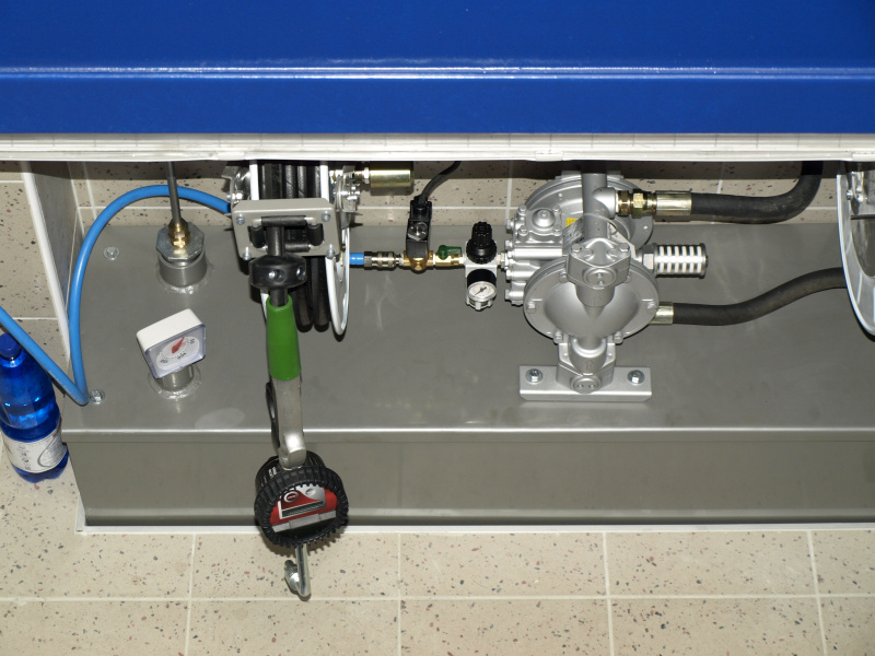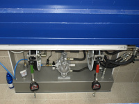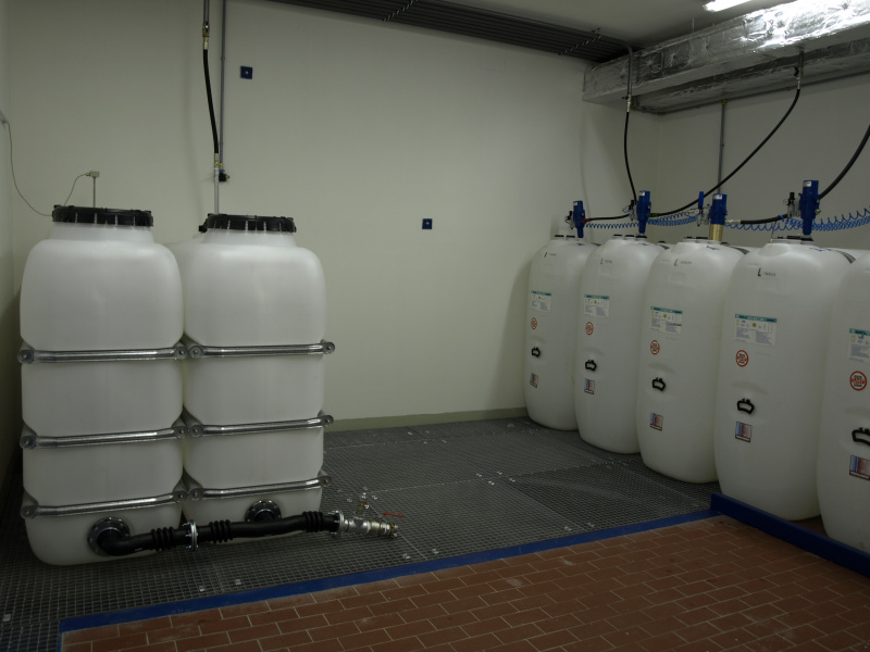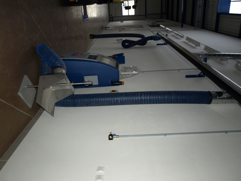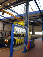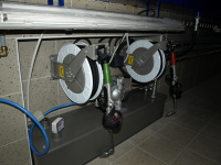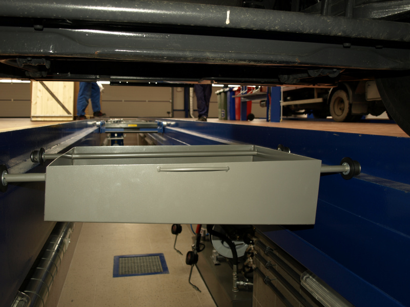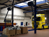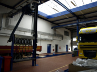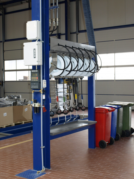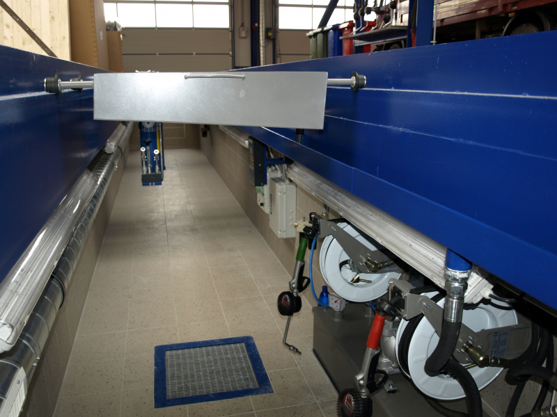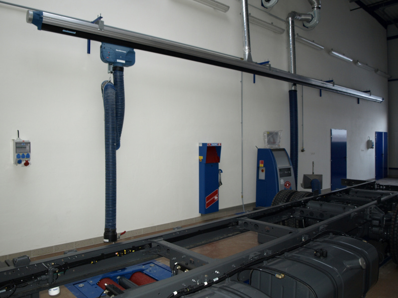 Olejové hospodárstvo pre servis nákladných automobilov DAF Nýřany. Realizácia výdaja nových olejov na výdajnom stojane a v montážnej jame. Odsávanie použitého oleja. Súčasťou dodávky je aj inštalácia odsávacej lišty výfukových splodín.