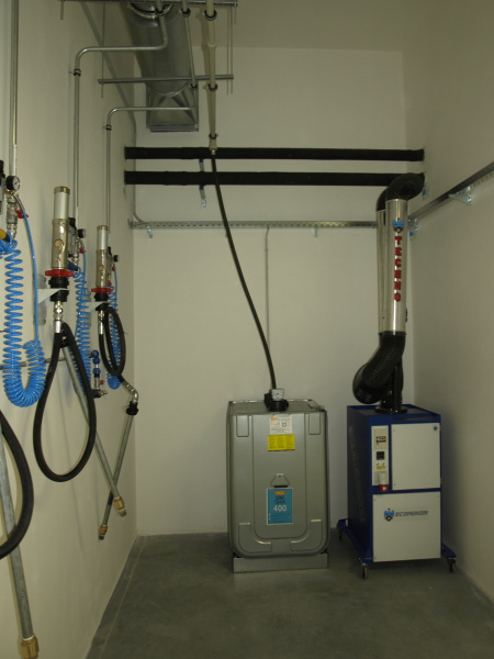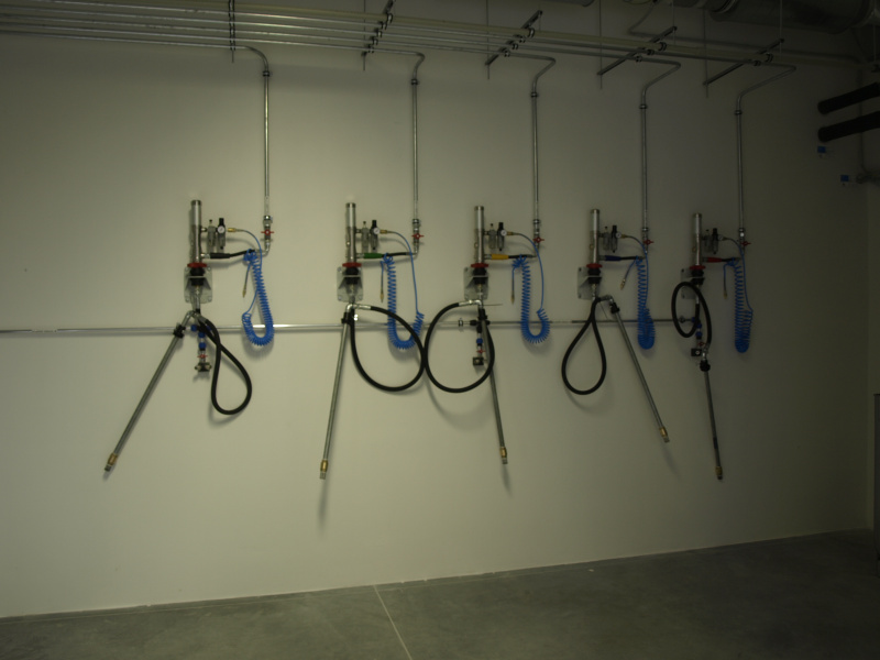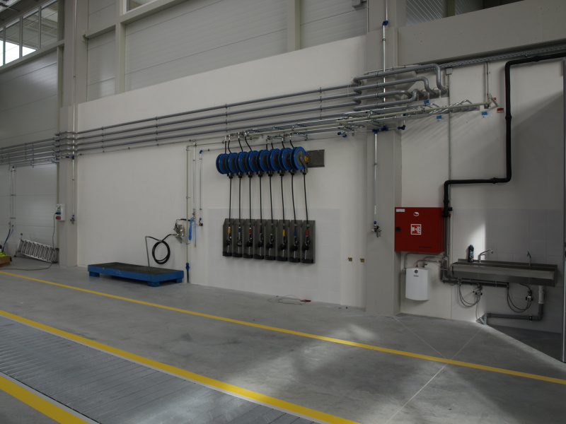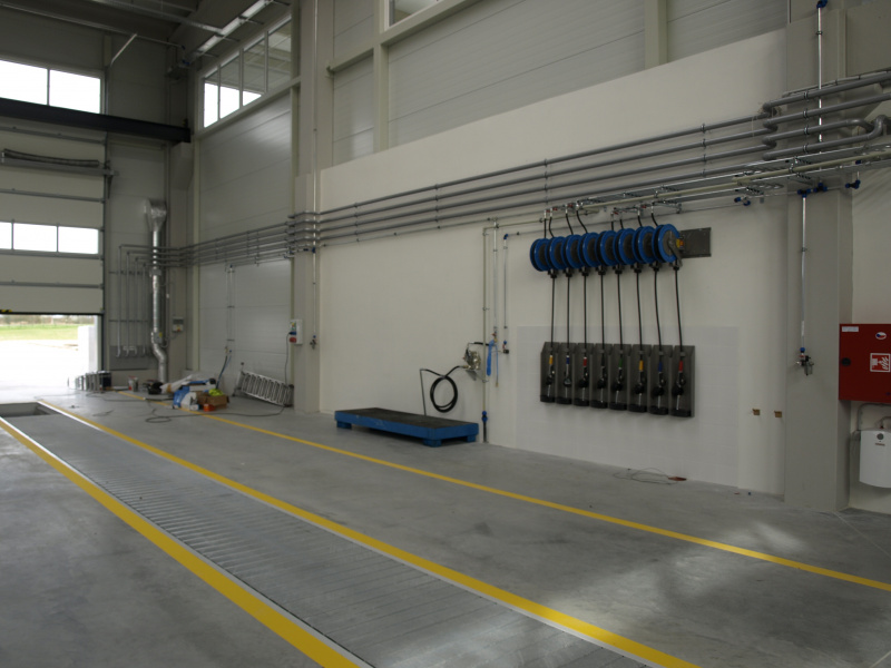 Kompletná dodávka olejového hospodárstva pre servis poľnohospodárskej techniky Dagros. Výdaj nových olejov na navíjačoch s monitorovacím zariadením. Skladovanie nových olejov v nádržiach napojených a plnených zo stáčacej skrine umiestnenej na fasáde a vybavené kompletnou elektronikou na snímanie hladiny. Súčasťou dodávky taktiež odsávacie ramená pre výfukové splodiny a mobilné odsávacie zariadenia pre zváracie plyny.