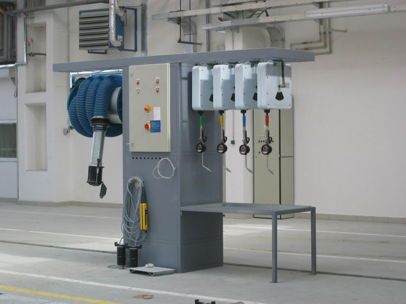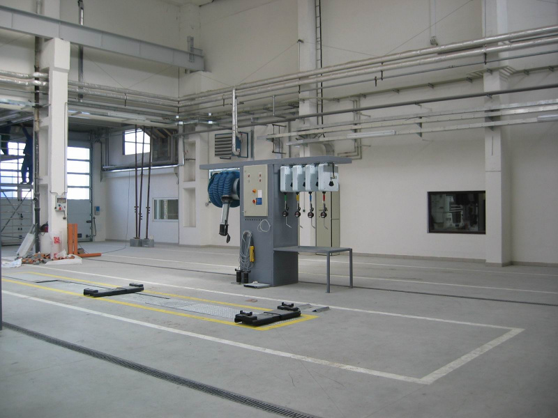 Dodávka kompletného olejového hospodárstva pre servis nákladných vozidiel Renault v Olomouci. Dodávka vr. na zákazku vyrobených výdajných stojanov so zabudovaným odsávaním.